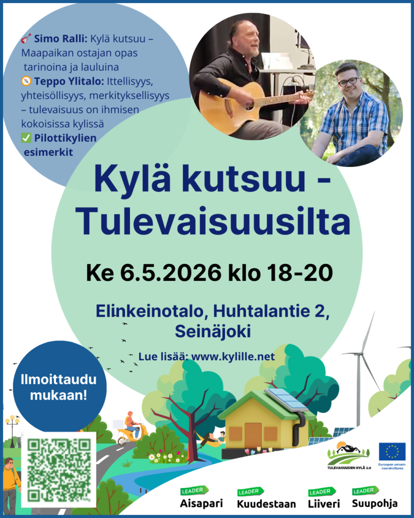 Tervetuloa mukaan Kylä kutsuu – Tulevaisuusiltaan keskiviikkona 6.5.2026 Elinkeinotalolle Seinäjoelle, osoite Huhtalantie 2 .